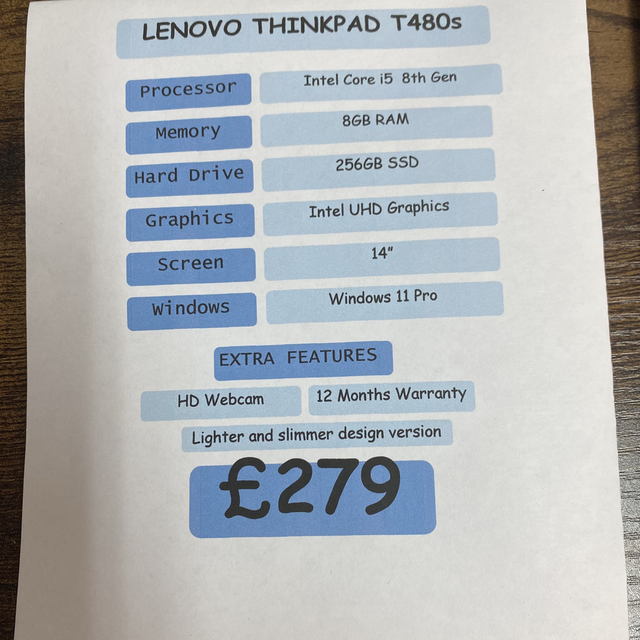 This Lenovo Thinkpad is a superb fast laptop with ample storage and RAM. It has a 14 inch screen . This model is well sought after. It comes with charger and 12 months warranty